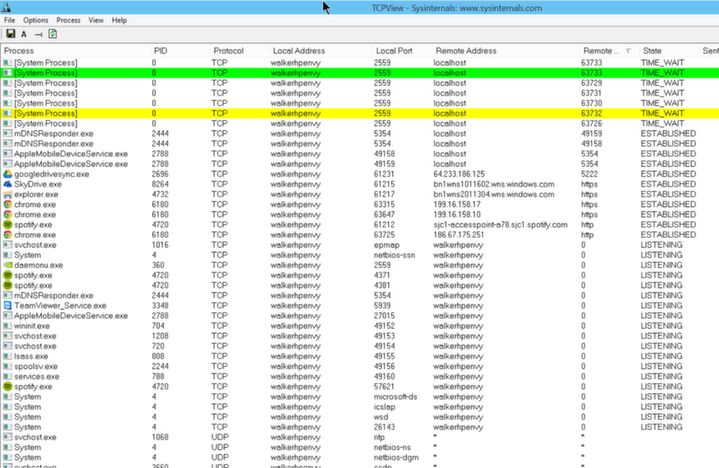 TCP View is a tool provided by Microsoft that shows you what network connections each running program is making. This should be part of any system administrator’s toolkit to use as a means of auditing machines. You can look here to see if your computer is connecting to IP addresses you do not know, which could be a hacker. It also reveals what software is on your machine that you might want to remove since it is just taking up bandwidth and CPU without providing anything useful to you. Examples of this include Adobe update and many of the other update tools that vendors install without telling you.