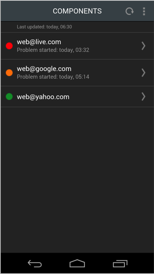 Using green, yellow and red color codes and text information, the application indicates if users’ web services, servers and other IT infrastructure components are working properly. If there is a downtime occurrence, the app allows users to see when it began and provides information about the cause of the problem. You can also view your account information, including the number of monitors, your price plan and subscription expiration dates.