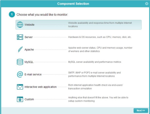 The component monitoring tool allows to drill down into system components level and investigate performance issues. To provide the component view of the system, the user inputs the various components that make up the system into the infrastructure model and links them together. Depending on the component, it might be necessary to install an agent on the system to check its performance. These agents generally have a light footprint, meaning they do not impact the performance of the component they were deployed to measure. An agent is needed to monitor the OS, server resources, and local application metrics.