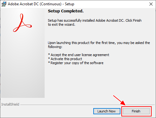 14. Click Finish (do not launch Adobe Acrobat Pro DC 2021 yet)