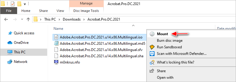 6. Open the folder that you’ve extracted just now, right-click on the ISO file and click Mount.
