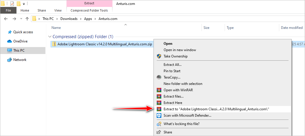 4. Open the directory where you saved the installer, right-click on the ZIP file, and then select Extract to.