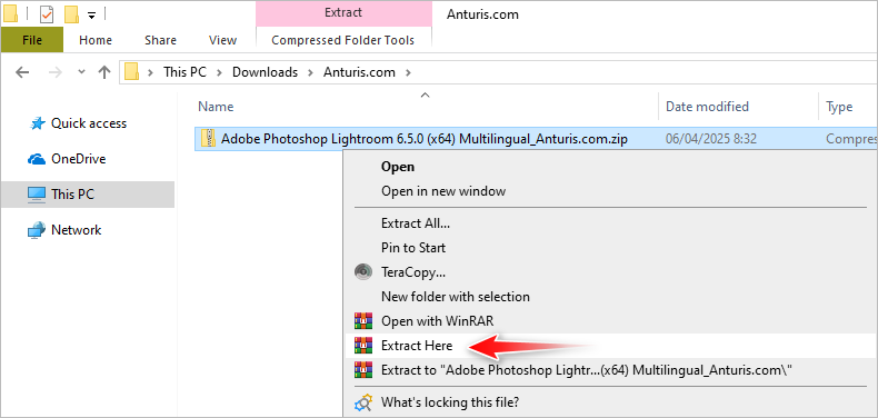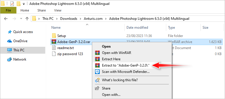 4. Extract the archive file. If it asks you for a password, enter 123.