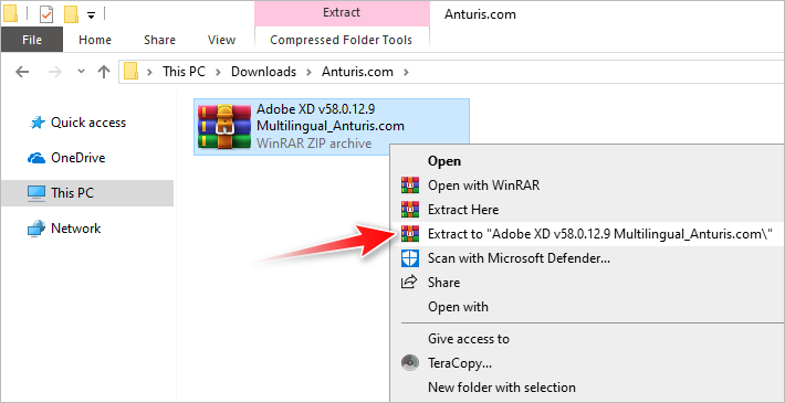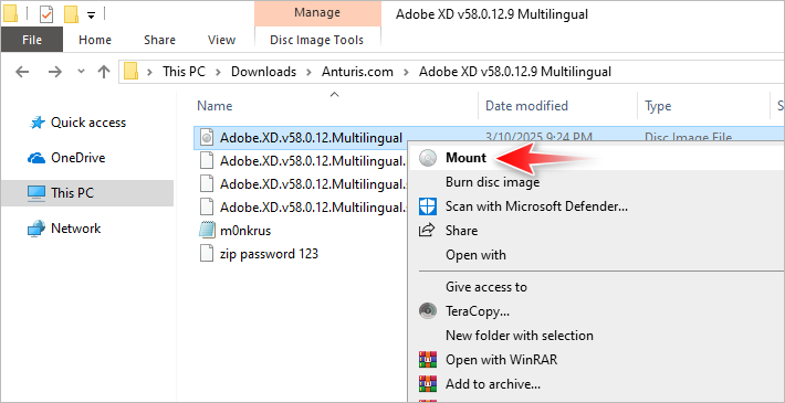 6. Open the extracted folder, right-click on Adobe.XD.v58.0.12.Multilingual, and select Mount.