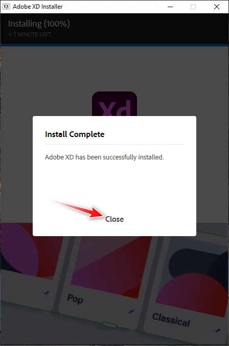 10. Do not launch Adobe XD yet. Wait until the window shown below pops up on your screen, and then click OK.