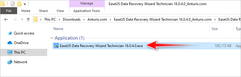 5. Open the EaseUS Data Recovery Wizard Technician 16.0.4.0_Anturis.com folder and double-click the executable file. If UAC (User Account Control) window pops up, hit Yes.