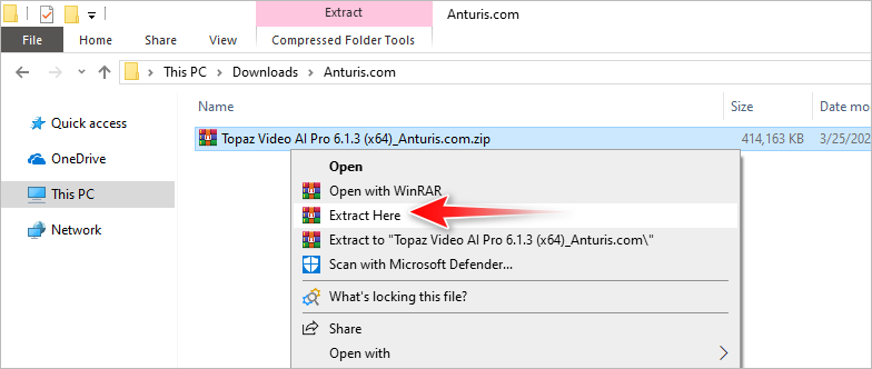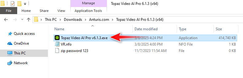5. Extract Topaz Video AI Pro 6.1.3 (x64)_Anturis.com using Winrar or other file extraction software. The password is 123.