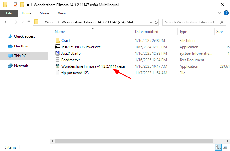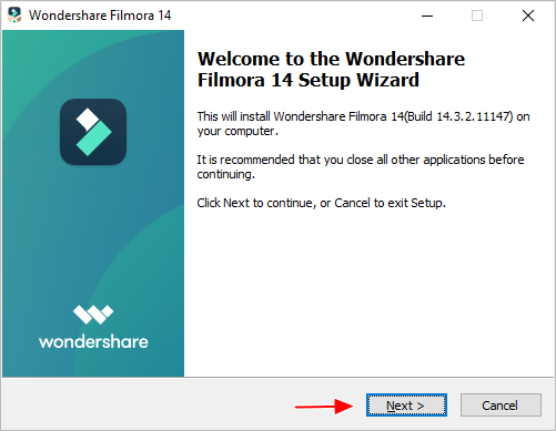 6. Double-click on Wondershare Filmora v14.3.2.11147.exe to run the installer.