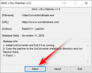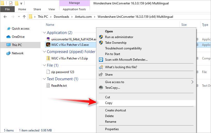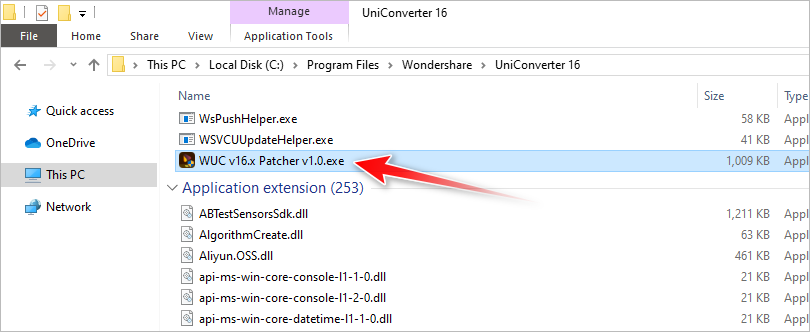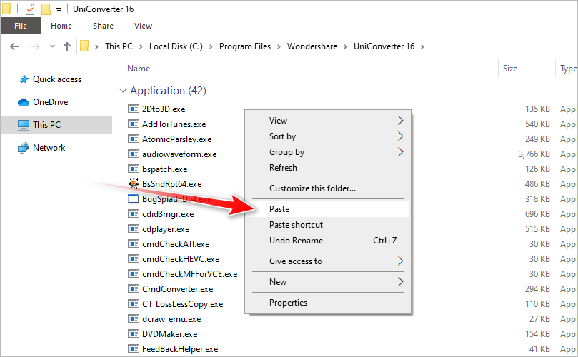 14. Go to the installation folder and paste the executable file there: C:\Program Files\Wondershare\UniConverter 16