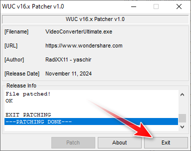 17. Press Exit after the patching is completed.