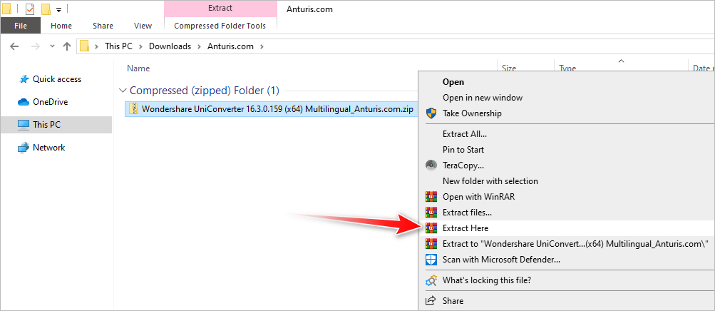 12. Go back to the folder where the installer is located, and extract the ZIP file.