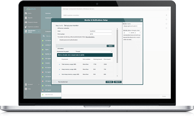 Anturis JVM monitor allows you to monitor total memory usage, heap, non-heap and pool memory usages, threads and classes of JVMs, to ensure the best performance.
