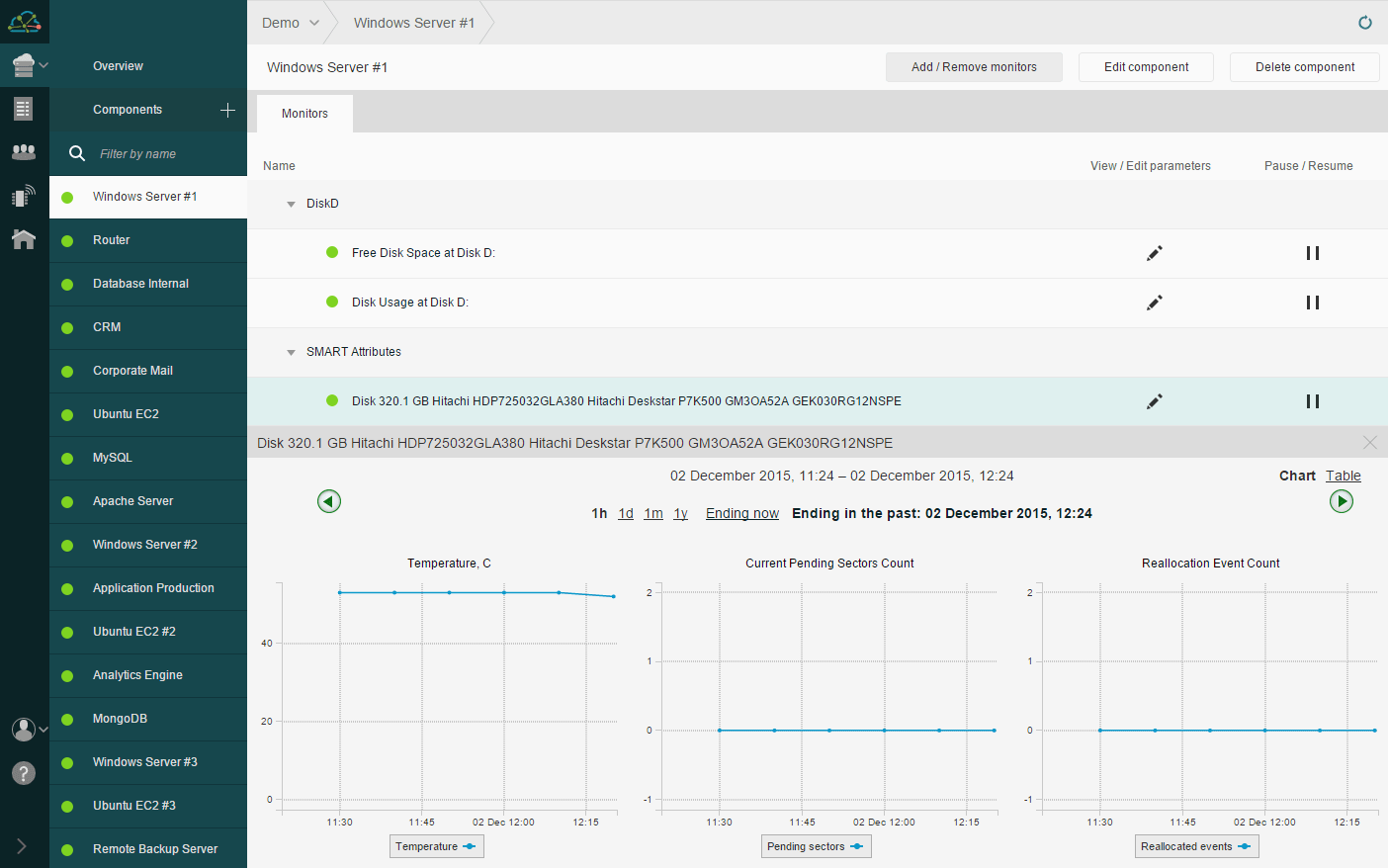This monitor allows you to constantly check the SMART drive’s health status and performance attributes, analyze the collected historical data using reports, and be notified if a drive is about to fail or a chosen attribute’s value has exceeded the vendor-defined threshold. You can learn the basics of the SMART system here.