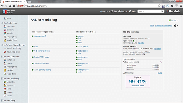 Anturis Version 2.0 also includes Parallels Plesk Uptime Monitor, a new feature of Anturis Parallels Plesk plugin. This new Plesk Uptime Monitor periodically checks whether servers are reachable and functioning properly. You can start basic monitoring of your servers in the Parallels Plesk Panel – even if you don’t have an Anturis account.